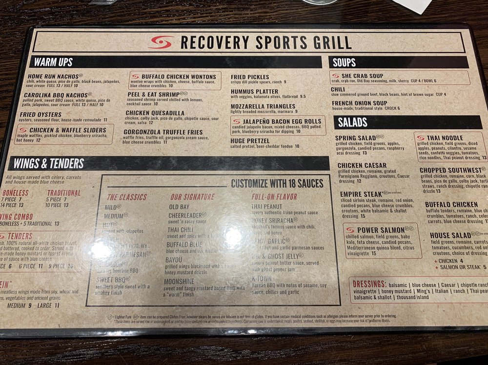 Introducing the Menu at Recovery Sports Grill Chesapeake