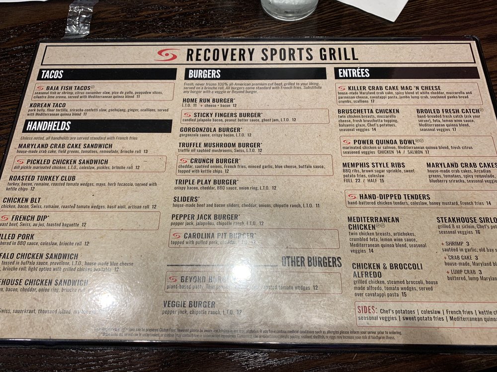 Recovery Sports Grill Chesapeake Menu (Update 2025)